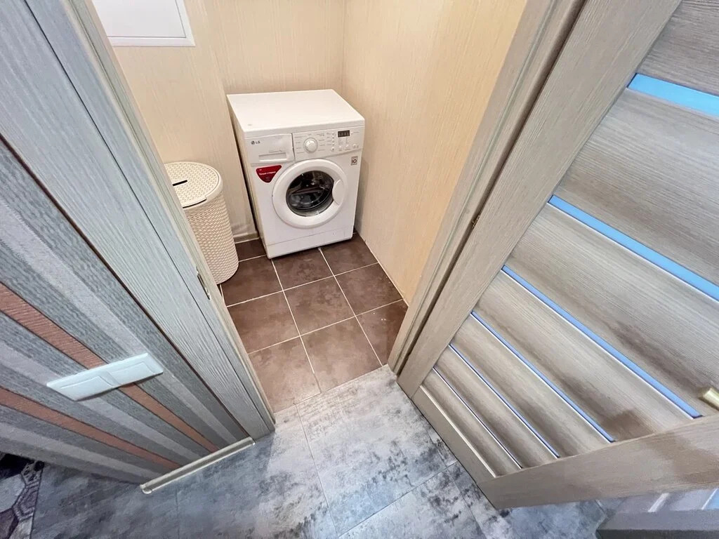 КУХНЯ оснащена современным гарнитуром с обилием шкафов и секций, ручки инхрустированы стразами, встроенная техника: микроволновка Samsung, BOSCH духовка, вытяжка и варочная панель Electrolux. Рядом с кухней расположена кладовка/постирочная со стиральной машиной LG.